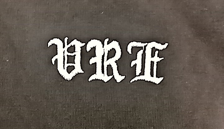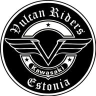 Rinnal lühend VRE ja seljal ülal kiri Vulcan Riders Estonia, keskel Vulcani tiivad ja alumisel osal kiri SUPPORT
